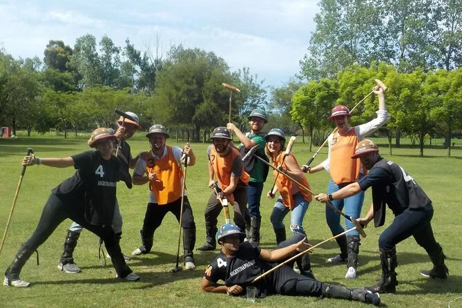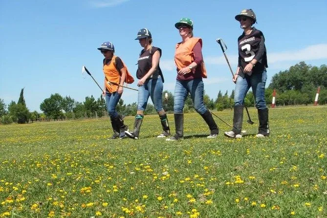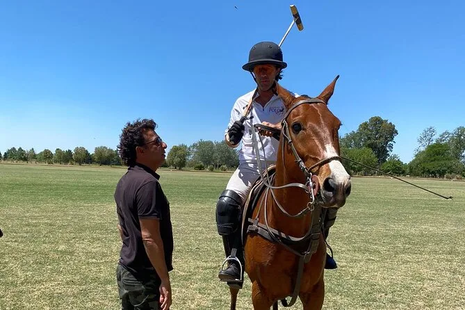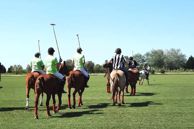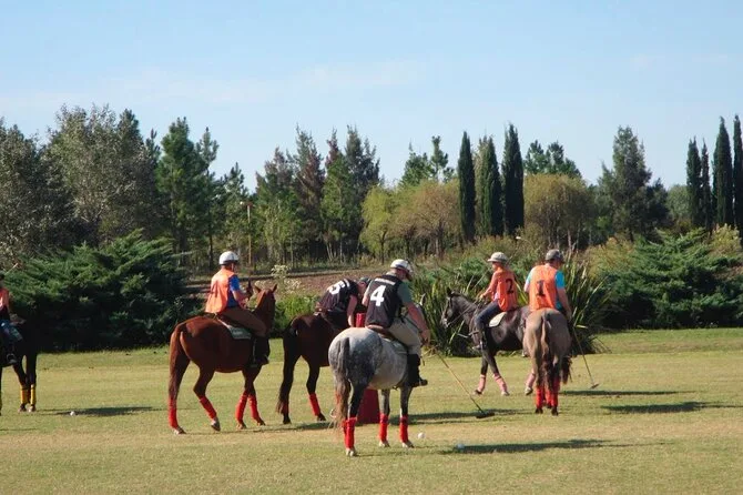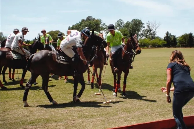 Tu día incluye traslado ida y vuelta desde Buenos Aires, entrada a un club de polo en el campo donde verás un partido profesional en vivo, degustación de empanadas regionales con vino local al llegar, un almuerzo con asado argentino (con opciones vegetarianas), una clase de polo para principiantes con todo el equipo y profesores expertos, además de tiempo para nadar o pasear antes de regresar a la ciudad.