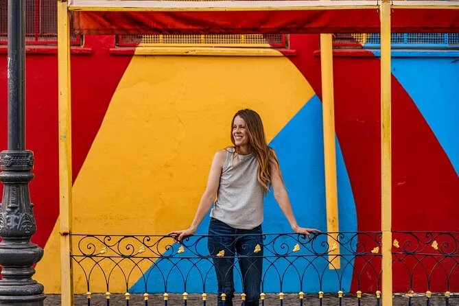 Luego fuimos a Palermo Soho — murales por todos lados, colores tan vivos que casi lastiman la vista si los mirás mucho rato. Algunos vecinos nos saludaban al pasar; un chico con la camiseta de Boca Juniors nos dio indicaciones cuando nos perdimos (todavía recuerdo ese mural que nos señaló). Paramos para un cortado rápido antes de ir a La Boca, donde las calles se sentían más ruidosas — música saliendo de ventanas abiertas, chicos jugando al fútbol cerca de Caminito. Si reservas este paseo fotográfico en Buenos Aires, sabé que no te llevarás solo fotos. Es como si te regalaran pedacitos de la ciudad para guardar.