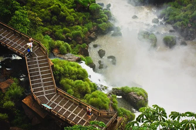 Tu día incluye traslado de ida y vuelta desde hoteles en Puerto Iguazú, todo el transporte dentro del parque Iguazú, incluyendo el tren ecológico por senderos selváticos y un paseo en camión safari al aire libre con guía bilingüe. Antes del paseo en barco recibirás bolsas impermeables para tus pertenencias. Recuerda que las entradas al parque y el almuerzo no están incluidos.