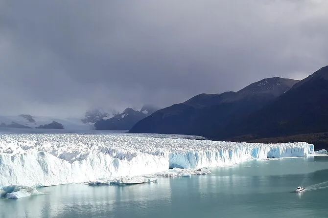 Sumérgete en el silencio de la Patagonia en el glaciar Perito Moreno, caminando por senderos junto al lago Argentino con un guía local que comparte historias. Siente el frío de cerca en un paseo en barco junto a la imponente pared de hielo — y si tienes suerte, verás un trozo desprenderse. Incluye traslado desde tu hotel en El Calafate para que solo tengas que llegar listo para una experiencia inolvidable.