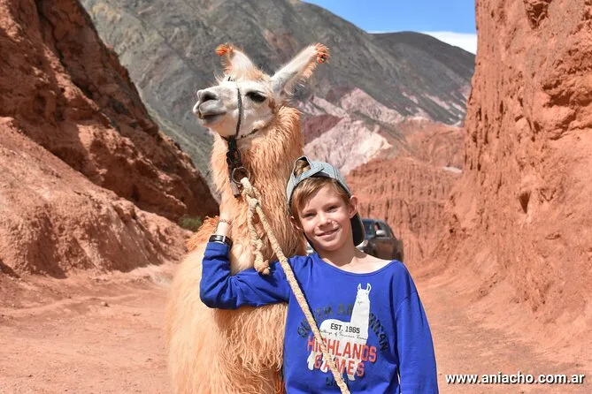 Tu día incluye una caminata privada por los cerros de Purmamarca con un guía local, una llama amigable por participante (los niños menores de 9 comparten), paradas para fotos y relatos sobre plantas nativas — todo a tu ritmo y con regreso cuando quieras.