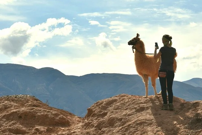 Camina tranquilo junto a llamas dóciles por los cerros pintados de Purmamarca, guiado por un local que comparte historias sobre plantas nativas y remedios caseros. Risas por intentos torpes de quechua, tiempo para fotos y abrazos, y una ruta que se adapta a tu ritmo. Sencillo pero muy reconfortante — seguro recordarás esos momentos de silencio mucho después.