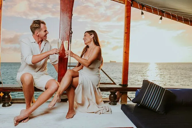 Navega por la costa oeste de Aruba mientras el cielo cambia de dorado a azul profundo, disfrutando una cena de cuatro tiempos preparada por un chef privado a bordo. Saborea cócteles artesanales y música en vivo en buena compañía, mientras la tripulación local comparte historias y risas. Aquí no hay formalidades, solo el placer de estar presente y llevarte esa vibra relajada de isla contigo.