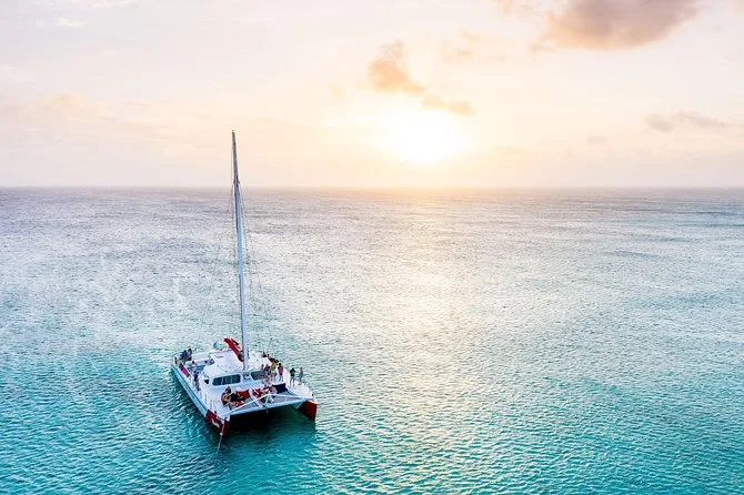 Navega al atardecer por la costa de Aruba en un amplio catamarán, con aperitivos y barra libre mientras suena música local. Disfruta el cambio de colores sobre Palm Beach y comparte historias con otros viajeros y la tripulación. Una experiencia relajada, divertida y auténtica que recordarás mucho después de volver a tierra.