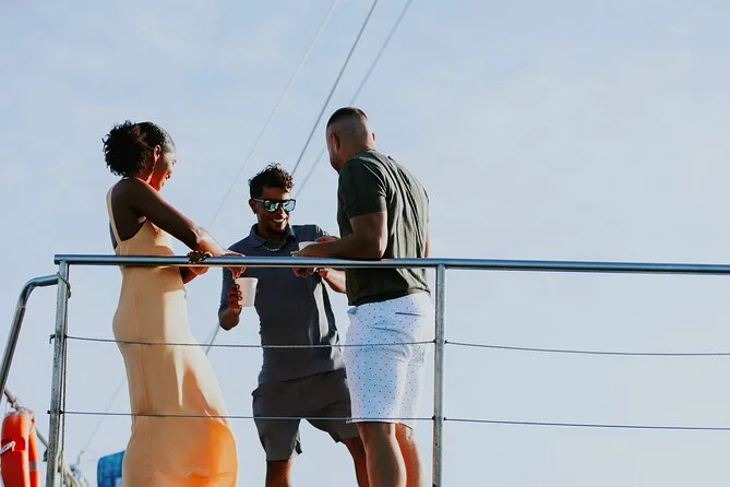 Tu noche incluye subir a un catamarán cómodo con cubierta abierta cerca de la costa de Aruba, con barra libre de bebidas alcohólicas durante el paseo y snacks salados mientras disfrutas el atardecer sobre la costa antes de regresar a tierra.