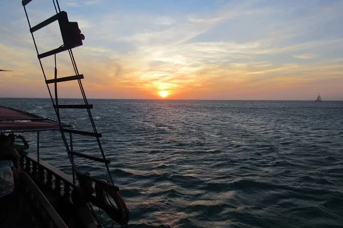 Sube a un auténtico bergantín pirata en MooMba Beach para un paseo al atardecer en Aruba con barra libre servida por una animada tripulación local. Atrévete con el columpio, relájate en las cubiertas de teca con música isleña y disfruta de un cielo pintado de colores salvajes. Risas, salitre y una historia nueva que contar te esperan.
