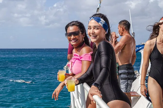 Tu tarde incluye traslado de ida y vuelta desde el hotel, uso de equipo de snorkel con instrucciones amigables de guías locales, todos los impuestos locales, además de snacks tropicales y barra libre durante las 3 horas de navegación en catamarán antes de regresar cómodamente a tu hotel.