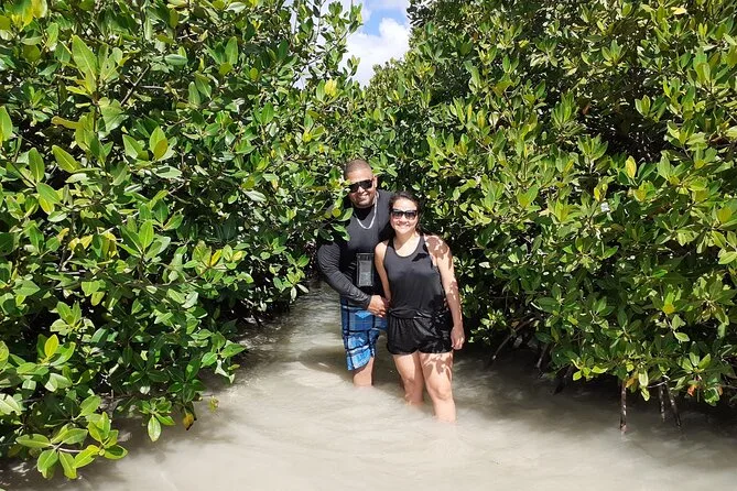 Los manglares se sentían casi secretos — raíces gruesas retorciéndose en el agua, todo en silencio salvo algunos pájaros revoloteando arriba. Ya no podíamos pasar por los túneles antiguos (algo para proteger el ecosistema), pero navegar por el borde seguía siendo muy tranquilo. Hubo un instante en que el sol iluminó las hojas justo y todo se volvió de un verde intenso. Recuerdo que olía mitad a agua salada, mitad a hojas mojadas después de la lluvia. Paramos un rato en Isla di Oro; la arena se pegaba a mis tobillos y no había nadie más, solo nosotros y un par de pelícanos mirando nuestra bolsa de snacks.
