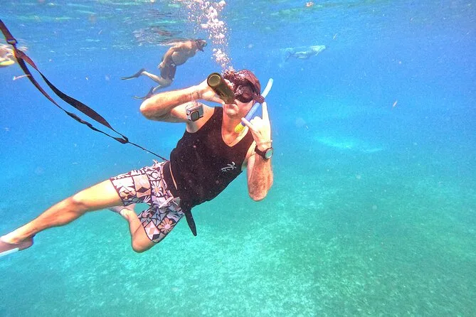 Sumérgete en las aguas claras de Aruba en Tres Trapi con un grupo pequeño y guía local—no necesitas saber nadar. Observa tortugas marinas, descubre peces de colores en los arrecifes y disfruta risas mientras flotan juntos. Todo el equipo está incluido, además de una bebida fría al terminar—una experiencia sencilla pero inolvidable.