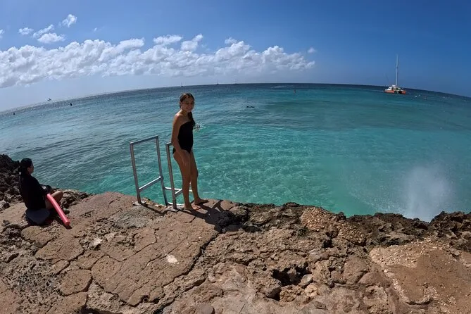 El tour se lleva a cabo en la playa Tres Trapi en Aruba.