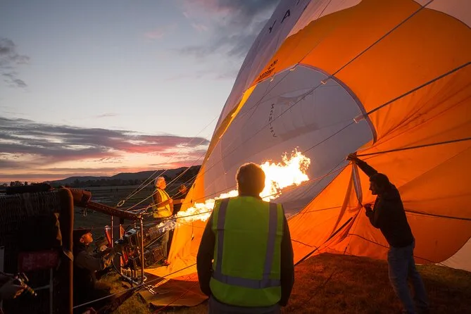 La mañana no empezó del todo bien: me confundí con la alarma y casi pierdo la recogida. Mi pareja ya estaba afuera en la oscuridad y el frío, riéndose mientras yo intentaba cerrar la chaqueta con una mano y sostener el café con la otra. Al llegar a Avon Valley, el cielo tenía ese azul intenso justo antes del amanecer, y nuestro guía (¿Dave? ¿O Dan? Todavía estaba despertando) nos dio unos guantes gruesos por si queríamos ayudar a preparar el globo. Los quemadores hicieron un ruido fuerte que me sorprendió, pero la verdad es que hizo que todo se sintiera más real. La hierba estaba húmeda bajo los pies y se percibía un suave aroma a eucalipto que venía de algún lugar cercano.