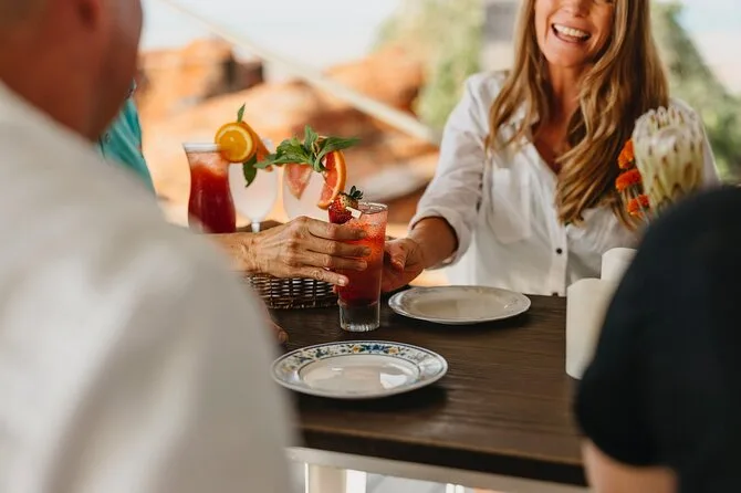 Tu día incluye un crucero guiado por la costa de Broome con paradas para caminar entre huellas de dinosaurios en una playa remota, seguido de un paseo por Dampier Creek con vino espumoso y platos gourmet a bordo; luego disfruta cócteles y una cena de cinco tapas (con el famoso pastel de chocolate sin harina) en un local exclusivo frente al mar, con acceso a bar con licencia durante toda la visita.