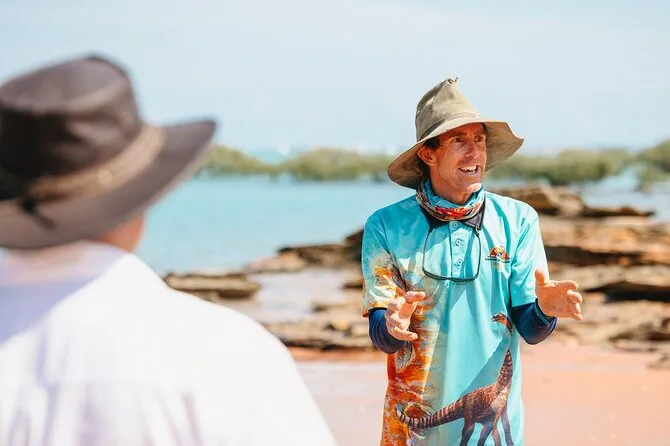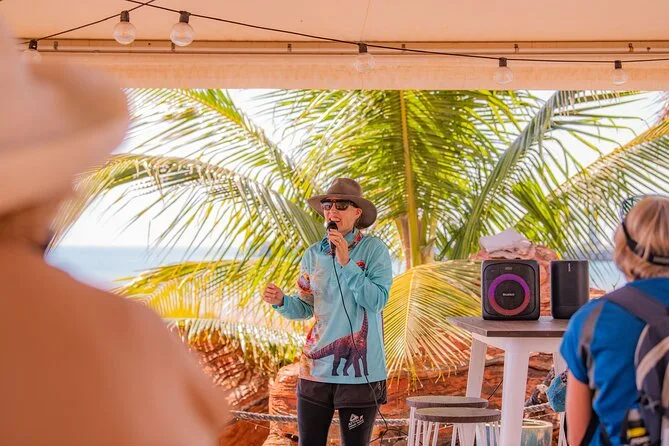 Sí—el tour hace una parada en huellas de dinosaurios de 120 millones de años en una playa aislada cerca de Broome.