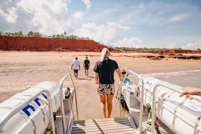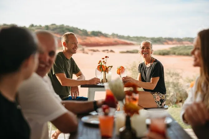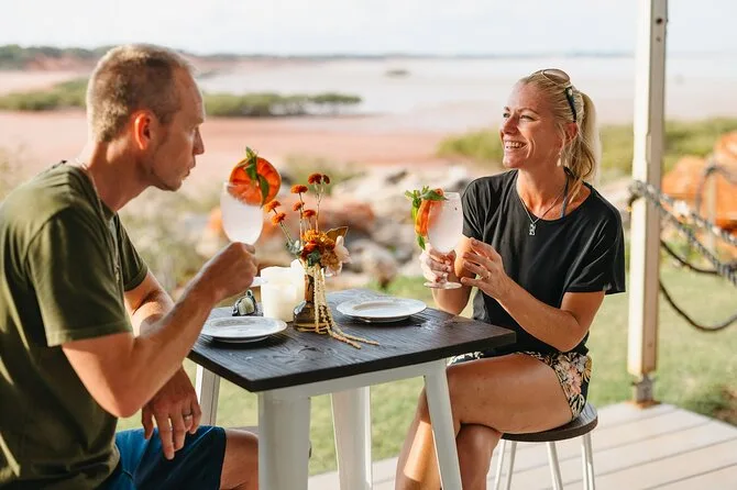 Camina sobre huellas reales de dinosaurios cerca de Broome, navega por Dampier Creek con vino espumoso y bocados gourmet. Tras avistar fauna en Roebuck Bay, relájate con cócteles y una cena de cinco tapas junto al agua. Risas, historias locales y quizás un poco de pastel de chocolate en la camisa—así es este día.