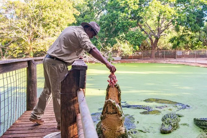 Tu día incluye la entrada al Parque de Cocodrilos Malcolm Douglas, recogida y regreso desde cualquier punto en Broome (hoteles, aeropuerto o centro de visitantes), acceso VIP con tour guiado por expertos locales que muestran la alimentación de cocodrilos y paseos por Rogue Crocodile Alley—todo en un vehículo con aire acondicionado para refrescarte después de caminar bajo el sol del Kimberley.