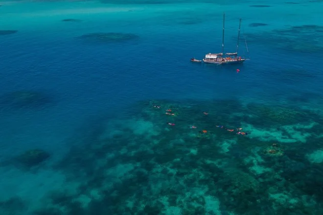 Navegarás desde Cairns con solo 25 personas, harás snorkel en un sitio exclusivo de la Gran Barrera de Coral, disfrutarás de un almuerzo en cubierta y luego tomarás la lancha para explorar las playas o la selva de Green Island a tu ritmo. La tripulación es relajada pero atenta, haciendo que todo se sienta personal y sin complicaciones. Si buscas espacio y momentos auténticos sin multitudes, este es tu plan ideal.