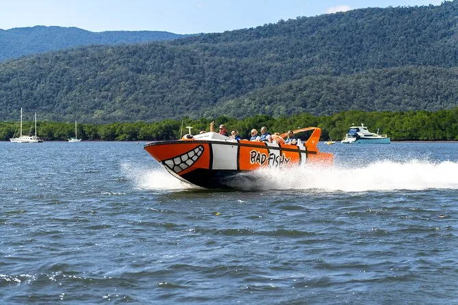 Tu experiencia incluye una charla de seguridad completa antes de partir y un paseo de 35 minutos en jet boat a alta velocidad por Trinity Inlet en Cairns, con un capitán experto guiándote en cada giro y salpicadura.