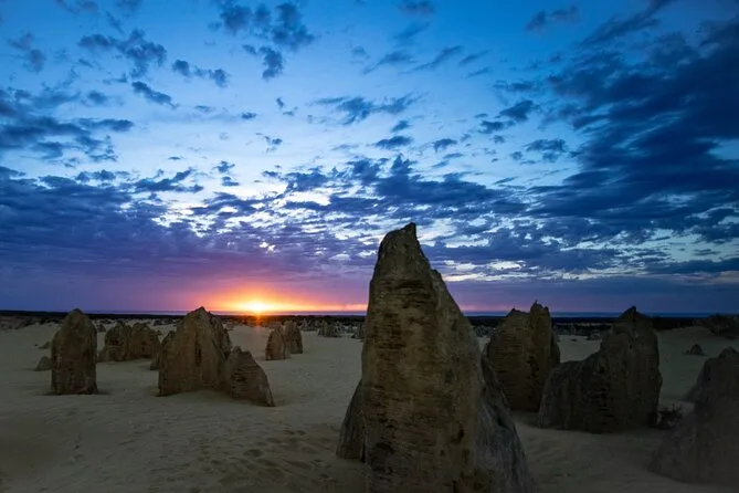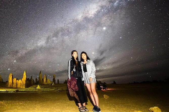 Vive el cambio del desierto del sol ardiente a la noche fresca en este tour a Pinnacles desde Perth: sandboard en las dunas de Lancelin, prueba plantas comestibles locales, disfruta una barbacoa al atardecer junto a las formaciones de piedra caliza y escucha relatos Dreamtime mientras observas las estrellas con telescopios y guía.