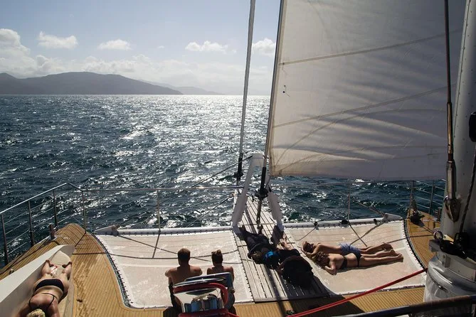 Surcamos el agua rápido, el viento me volaba el sombrero, y la gente empezó a contar de dónde venían — una pareja de Berlín acababa de descubrir qué significa “bogan” (aún me río al recordar sus caras). Nuestra guía, Jess, señalaba pequeñas islas mientras pasábamos y nos explicaba cómo eligen cada día los mejores puntos de la Gran Barrera según el clima. Sin guion, solo charla real. Cuando anclamos en el primer arrecife, dudé en el borde hasta que Jess me empujó suavemente: “Solo mira hacia abajo.” Y wow — de repente todo era color y movimiento, peces nadando como si fueran los dueños. Mi máscara se empañó y tragué medio océano, pero ¿sabes qué? No me importó.