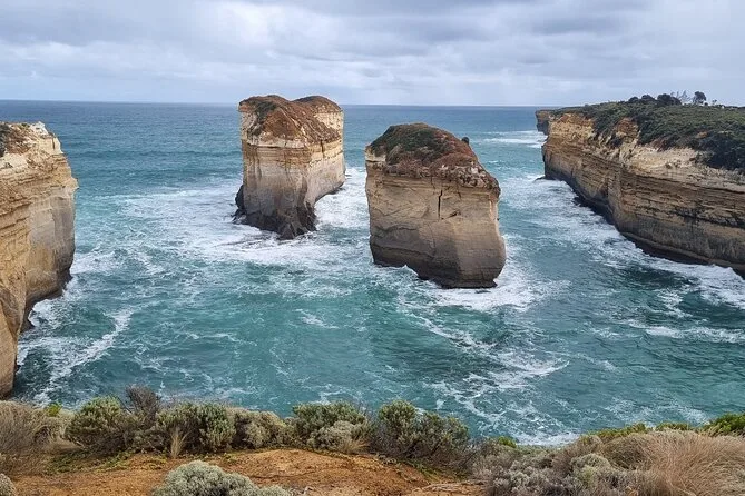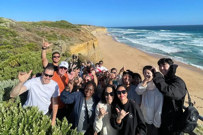 El recorrido incluye Memorial Arch, almuerzo en Apollo Bay, caminata por la selva de Melba Gully hasta la cascada Cascades, los Doce Apóstoles, Loch Ard Gorge, The Archway, Razorback y Dumpling Pots.