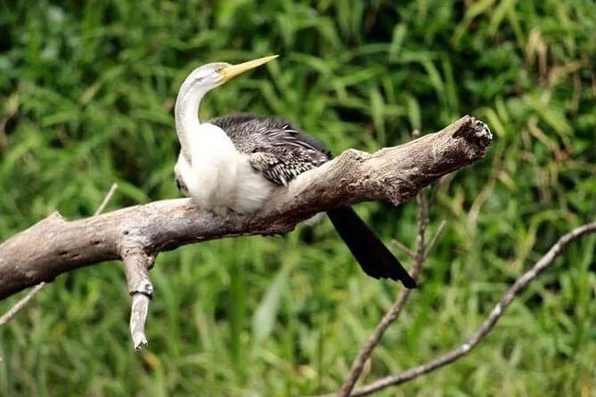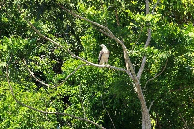 El paseo fue tranquilo, pero en el mejor sentido. Steve señaló una tortuga tomando el sol sobre un tronco antes de que yo la viera — nos contó que se llaman tortugas de caparazón aserrado y que, según él, pueden respirar por el trasero. (Me reí a carcajadas; Steve solo se encogió de hombros como si fuera lo más normal.) Navegamos junto a raíces enredadas que se sumergían en el agua, con lianas colgando tan bajas que si te asomabas un poco rozaban tu brazo. En una curva nos pidió silencio — “Escuchen,” dijo — y pudimos oír el canto de un pájaro látigo desde lo profundo del bosque. Era una paz rara, salvo por mi pareja que susurraba cada cinco minutos “¿Eso es un cocodrilo o solo un tronco?” Spoiler: al final sí vimos un cocodrilo de agua dulce, con los ojos apenas asomando sobre la superficie.