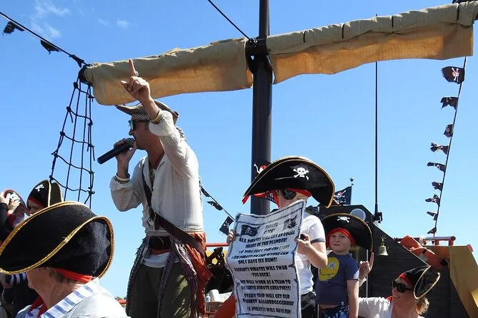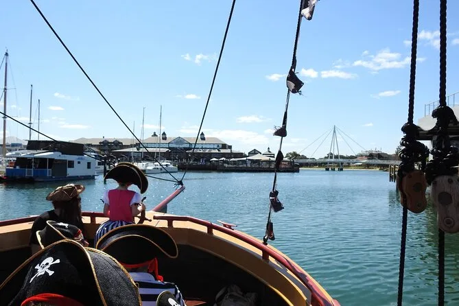 Sube a un barco pirata animado en los canales de Mandurah con una tripulación local amable, toca campanas, toma el timón, avista delfines de cerca y ríe junto a niños y adultos. Disfruta momentos divertidos, vistas de casas impresionantes frente al agua, protector solar gratis y muchas oportunidades para participar o relajarte mientras navegas entre delfines y pelícanos.
