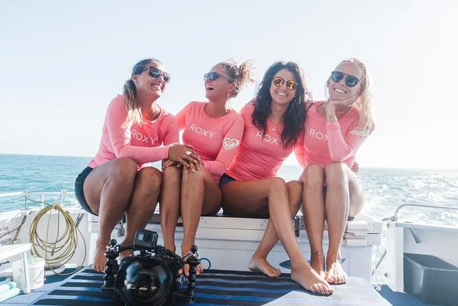 Tu día incluye recogida y regreso al hotel desde cualquier punto de Exmouth, todo el equipo de snorkel (máscaras, aletas—incluyendo máscaras con graduación si las necesitas), trajes de neopreno y chalecos para mayor comodidad en el agua, además de snacks para la mañana y un almuerzo buffet servido a bordo entre inmersiones. Siempre hay un zodiac de seguridad cerca mientras nadas con los tiburones ballena o exploras los jardines de coral de Ningaloo Reef—y si la suerte no está de tu lado ese día, tienes otra oportunidad gratis para intentarlo.
