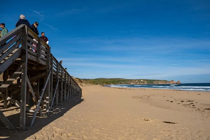 Después llegamos a Woolamai Beach—el viento me voló el sombrero y la arena estaba por todas partes. Las olas parecían enormes. Había un par de surfistas locales, apenas puntos en ese mar azul grisáceo. Almorzamos de forma informal en Cowes; nada lujoso, pero las papas estaban buenas, y el perro de alguien no paraba de pedir debajo de la mesa (no pude resistirme). Nuestro guía Liam contó historias de cuando creció cerca—dijo que se saltaba la escuela para venir al Penguin Parade (su mamá siempre lo atrapaba). El paseo por el boardwalk de Nobbies se sentía salvaje y abierto—vimos focas descansando en las rocas a lo lejos. Y la verdad, no esperaba ver tantos wallabies tan cerca.