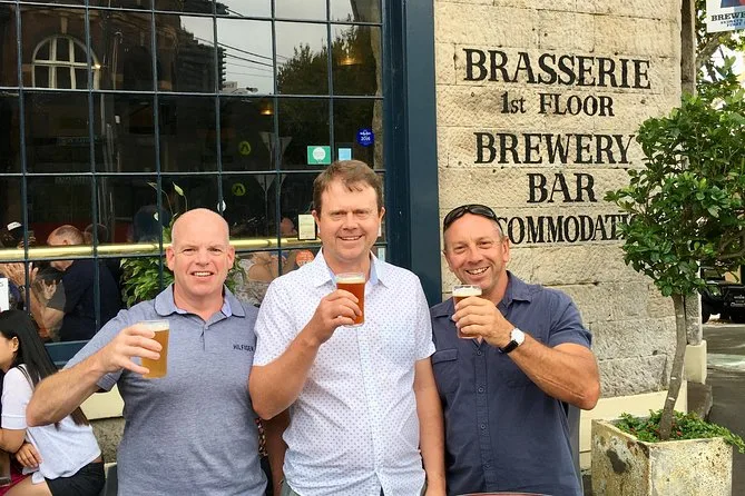 Tu tarde incluye todas las bebidas—una opción entre cerveza artesanal, vino o refresco en cada uno de los cuatro pubs históricos—más una caminata guiada de 2,5 horas por The Rocks con muchas historias de tu guía local profesional, terminando justo donde comenzaste.
