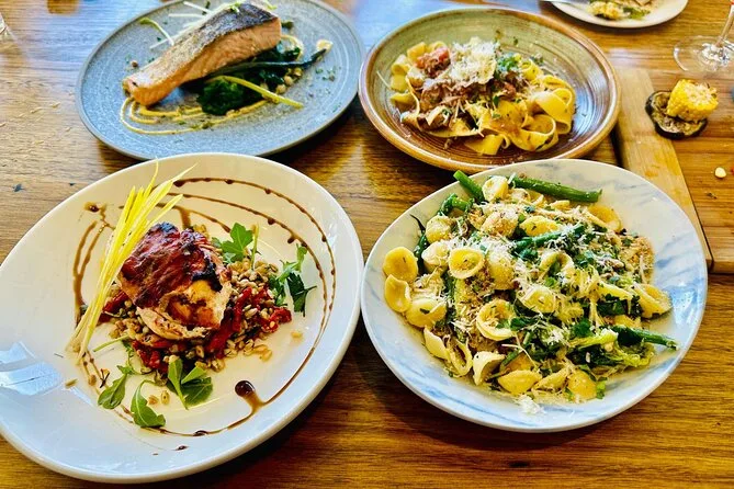 Primera parada: Yering Station. No soy muy fan del Chardonnay, pero algo en beberlo en esa antigua bodega de piedra simplemente funcionó. Tal vez fue la luz entrando por esas grandes ventanas o que el personal no nos apuró, incluso cuando pedí una segunda copa (ups). En el almuerzo, nos sentamos en Soumah (o Helen & Joey, según el día), compartiendo pan caliente y antipasto mientras alguien intentaba pronunciar “Nebbiolo”. Los platos principales eran comida reconfortante — cordero para mí, pescado para mi amigo — todo con ese aroma herbal tan característico del lugar. Hubo risas, brindis y, sinceramente, más comida de la que esperaba.