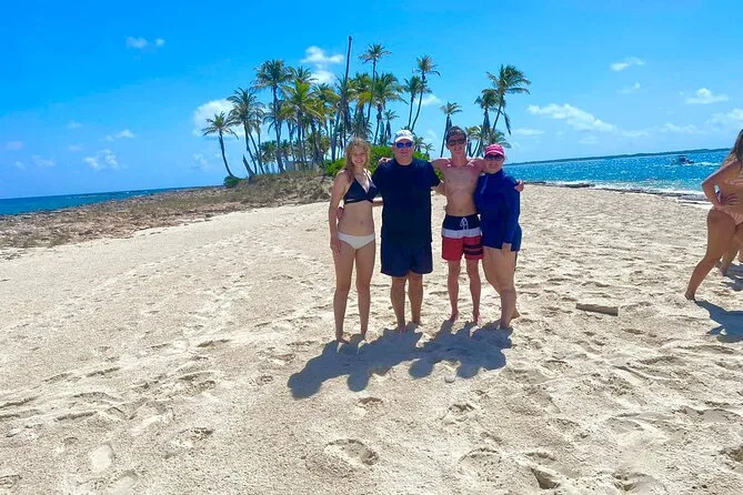 Después, Green Cay para ver las tortugas. Había visto fotos antes, pero verlas deslizarse bajo mis pies se sentía diferente — más tranquilo, de alguna forma. Hubo un momento en que todo quedó en silencio, solo se oía el agua golpeando el casco y un “wow” susurrado. Luego llegamos a Rose Island, que honestamente se sintió como nuestra playa privada por un rato. Arena tan suave que crujía bajo los pies, sol tan fuerte que no paraba de meterme en la orilla para refrescarme.