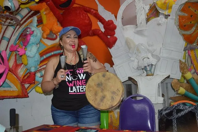 Podrás unirte: probar disfraces y tocar instrumentos durante una sesión en vivo de Junkanoo.