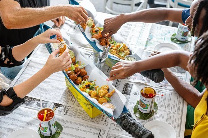 ¿Lo mejor? Deslizarse por Long Wharf Beach con esas aguas azules imposibles justo al lado. Paramos para fotos (claro), pero la verdad quería quedarme ahí oliendo el mar y el protector solar un rato. Luego nos fuimos rápido a Arawak Cay, la zona del Fish Fry, que es un estallido de colores, música y olor a fritura. Probé los conch fritters por primera vez (calientes, masticables y perfectos) y los acompañé con Switcha. Seguro me manché la camisa, pero a nadie le importó.