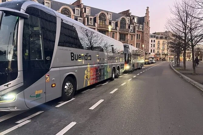 El transporte entre Bruselas, Brujas y Gante se realiza en autobús moderno con aire acondicionado junto al grupo.
