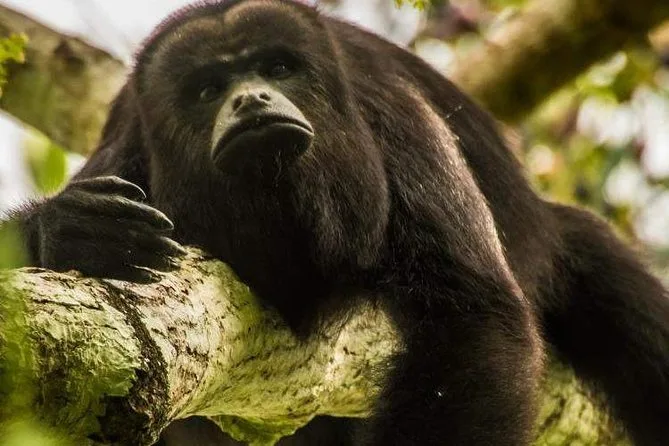 Después manejamos hasta el Santuario Comunitario Baboon — que en realidad es un grupo de pueblos donde la gente protege el bosque para que los monos aulladores negros vivan libres. Cuando empiezan a aullar es un ruido impresionante; uno de ellos gritó justo arriba de nosotros y, sinceramente, me vibró el pecho. Nuestro guía silbó y llamó suavemente hasta que una familia entera se acercó entre los árboles. Su pelaje parecía casi azul bajo la sombra. Me ensucié los zapatos con barro, pero no me importó — se te olvida todo eso cuando ves a monos salvajes comiendo hojas a solo tres metros.
