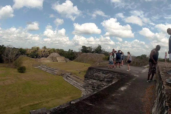 Tu día incluye recogida en hotel o puerto en Belize City, transporte con aire acondicionado y agua embotellada, visitas guiadas a las ruinas de Altun Ha y al Santuario Comunitario Baboon (con tiempo para fotos), además de entrada a una fábrica local de ron con cata — salvo domingos o feriados, cuando harás un tour guiado por la ciudad.
