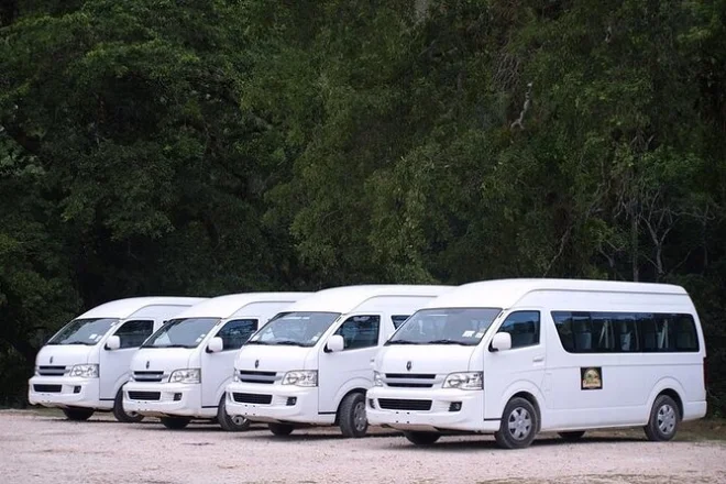 Viaja de San Ignacio a Flores en un shuttle compartido con conductor local—ventanas abiertas, paisaje pasando, cruce fronterizo sencillo. Disfruta recogida fácil, aire acondicionado y pequeños momentos de conexión con otros viajeros mientras entras a Guatemala, un viaje que recordarás mucho después de llegar.