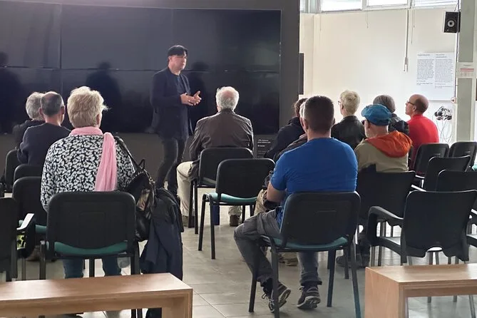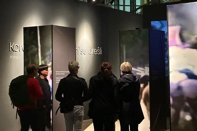 Dentro del museo, una curadora local nos guió por salas llenas de fotos y objetos — zapatos, cartas, cosas que pertenecieron a personas que nunca regresaron a casa. Compartió su propia historia sobre cómo sobrevivió aquellos días en Srebrenica; su voz apenas temblaba, pero sus manos sí. Me quedé mirando demasiado tiempo una carta escrita por un chico de mi edad en ese entonces — no puedo sacármela de la cabeza. Hay una parte donde te sientas a ver imágenes de julio de 1995; después de eso, nadie dijo mucho. Incluso Emir bajó la mirada hacia sus zapatos por un rato.