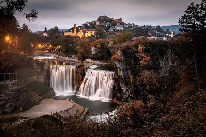 Viaja desde Sarajevo entre colinas de pino hasta las coloridas calles y fortaleza de Travnik, luego descubre la cascada rugiente y el castillo medieval de Jajce. Pasea junto a los molinos de agua de los lagos Pliva y disfruta un almuerzo tradicional con tu guía—risas, sabores locales y momentos que se quedan contigo mucho después.