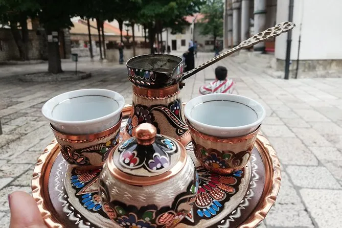 Tu guía local certificado te acompaña en todo momento; todas las degustaciones (café bosnio con baklava, burek tradicional) están incluidas; además recibirás un mapa de la ciudad para seguir explorando tras el tour.