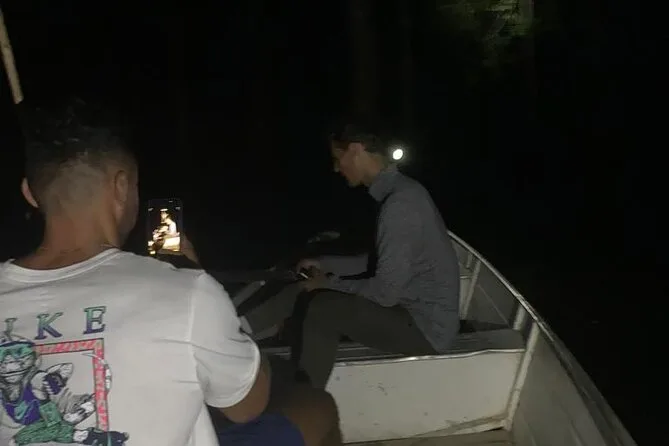 No esperaba que la selva amazónica se sintiera tan densa por dentro. La luz entraba a parches y a veces se escuchaba algo moverse entre la maleza — Paulo solo sonreía y decía “probablemente monos”. Vimos algunas arañas (grandes), aves de colores brillantes sobre nuestras cabezas, y en un momento nos mostró dónde se esconden los escorpiones bajo troncos caídos. ¡No sé si alguna vez me acostumbraré a eso! Aun así, estar con alguien que conoce cada sonido hacía que todo se sintiera seguro. No paraba de pensar en lo diferente que huele todo aquí comparado con casa — hasta mi camiseta atrapó ese aroma a hojas.