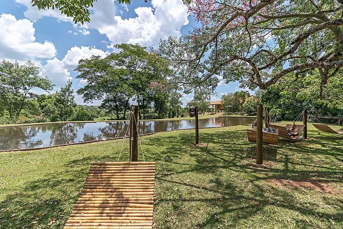 Después caminamos hasta la cascada Quatis (queda un poco más lejos, unos 1.5 km, pero es un paseo fácil salvo que vayas en chanclas como yo). La Mata Atlántica aquí se siente viva de una forma tranquila—solo el viento moviendo los árboles altos y alguien riendo a lo lejos cerca del área de juegos. Hay un snack bar si necesitas comer o tomar un café, además de duchas y lockers para que te cambies o te refresques después de la caminata. Todo es muy relajado—sin guías apurando, solo gente disfrutando a su ritmo.
