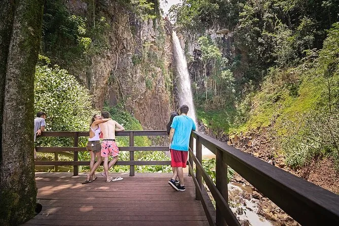 Tu visita incluye estacionamiento gratuito en el EcoParque Cassorova, acceso completo a ambas cascadas, todos los senderos del bosque (autoguiados), piscinas naturales con mini cascadas, miradores panorámicos, caminos accesibles para todos los visitantes, incluyendo usuarios de silla de ruedas, y uso total de vestuarios con duchas y baños. También hay opciones de comida en el lugar para cuando te dé hambre durante el día.