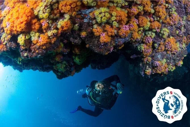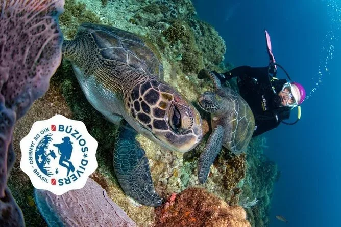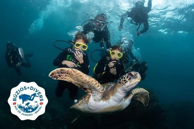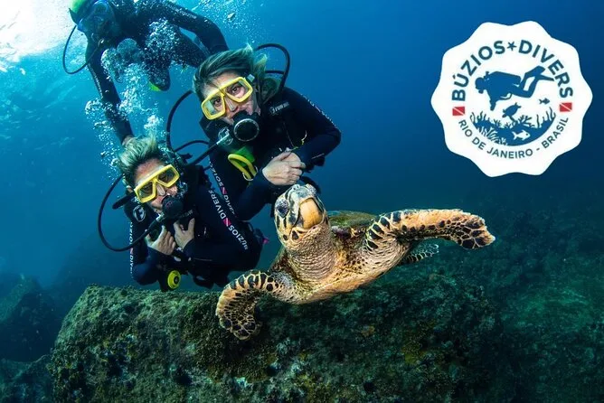 Tu día incluye buceo para principiantes o certificados en los mejores puntos de Búzios como el Santuario de Tortugas en Ilha de Âncora con un instructor especializado; transporte público cercano si lo necesitas; se permiten animales de servicio; alquiler de equipo disponible para principiantes, no incluido para certificados; y compartirás historias con locales entre inmersiones antes de regresar renovado.
