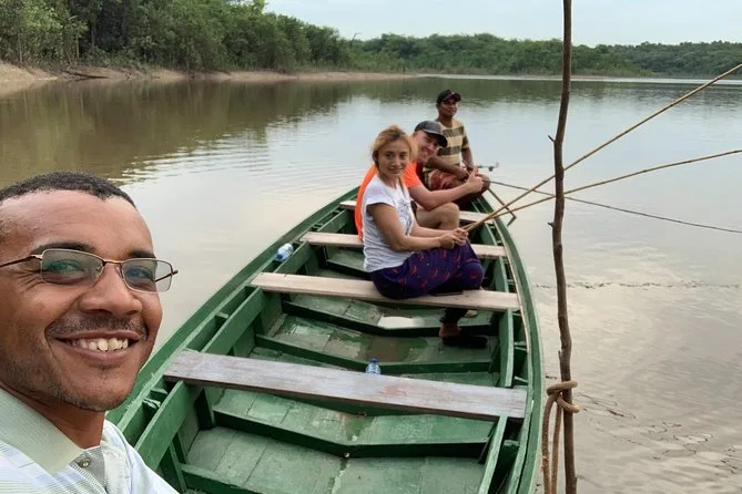 Tu día incluye recogida en hotel en Manaos en vehículo con aire acondicionado, todos los paseos en canoa por el lago Castanho y canales amazónicos con tu guía local Paulo (o alguien igual de apasionado), entrada para nadar con delfines rosados en la plataforma de investigación (no olvides tu traje de baño), almuerzo en casa flotante con platos regionales como pescado o pollo a la parrilla con arroz y frijoles — también agua embotellada — y todo termina con el regreso a tu hotel al caer la tarde.