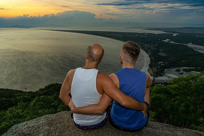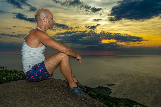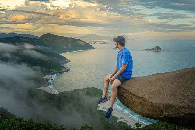 La subida a Pedra do Telégrafo fue cuando la cosa se puso seria. El jeep nos llevó casi hasta arriba—menos mal—pero el último tramo fue a pie por un bosque atlántico denso. Cuarenta minutos se sienten más largos cuando sudas y tratas de no resbalar con las raíces. Pero luego llegas a ese saliente donde todos se alinean para la foto (ya sabes, esa donde parece que estás colgando sobre un abismo). Nuestro fotógrafo nos fue guiando con paciencia mientras André repartía agua fría y plátanos. El atardecer llegó mientras estábamos ahí arriba: nubes rosadas sobre la costa de Río, el viento subiendo justo lo suficiente para cerrar la cremallera de la chaqueta. Alguien puso música bajito en el móvil; nadie dijo nada por un minuto o dos.