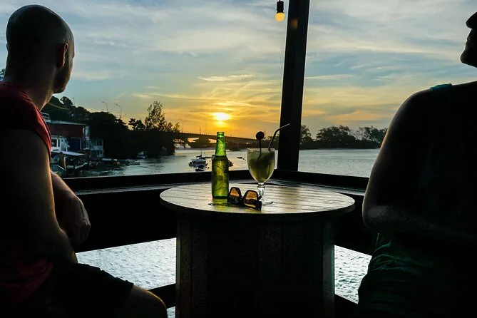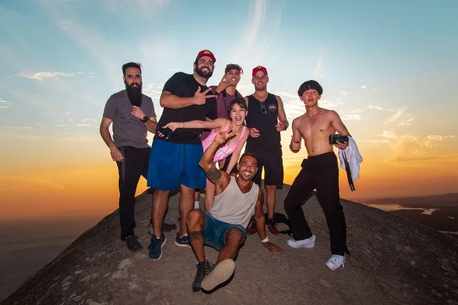 Tu día incluye recogida en hotel (para grupos privados), viaje en jeep 4x4 con aire acondicionado y WiFi a bordo, bebidas frías y snacks durante todo el recorrido (agua—incluso en la caminata—refrescos, café, plátanos y galletas), todo el equipo fotográfico manejado por un fotógrafo profesional que acompaña en cada parada, además de accesorios como binoculares o linternas si hacen falta. El almuerzo no está incluido pero hay tiempo para comer en un club con buenas opciones antes de subir a Pedra do Telégrafo para ver el atardecer y luego regresar a la ciudad por la noche.