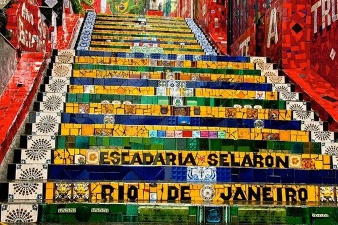 El almuerzo fue un buffet cerca de Lapa — feijoada para los valientes, o pollo a la parrilla con arroz para los más tímidos (yo probé ambos). Alguien en la mesa intentó enseñarnos pasos de samba después del postre, pero la verdad es que no tengo ritmo para eso. Luego subimos los Escalones Selarón; cada azulejo es distinto, algunos desgastados o rotos, pero eso los hace aún más especiales. La gente posaba por todos lados, pero lo que más me gustó fue ver a un hombre mayor barriendo las escaleras como si fuera el dueño (quizá lo era).