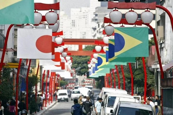 De vuelta en el coche, avanzamos por la Avenida 23 de Mayo mientras ella nos contaba sobre Liberdade — el barrio japonés de São Paulo. Paramos para dar una vuelta rápida; faroles rojos colgaban sobre la calle y se olía el pastel frito de un puesto cercano. Intenté decir “obrigado” con la boca llena de mochi dulce y seguro arruiné los dos idiomas a la vez. Había familias por todos lados, algunas vestidas para fotos bajo esos faroles. Se sentía animado pero acogedor, como si todos pertenecieran ahí.