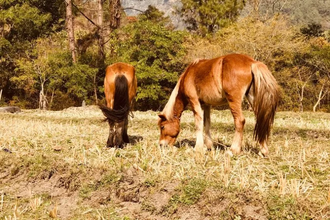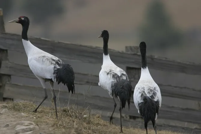 El camino a Gangtey serpentea entre bosques densos antes de abrirse al valle de Phobjikha—una amplia cuenca de pastizales donde las grullas de cuello negro pasan el invierno. Los locales nos contaron historias sobre estas aves como mensajeras de buena suerte. Vimos guías de miel volando entre ruedas de oración y pájaros sol cerca de antiguas granjas. El valle en sí estaba en calma, solo roto por el lejano tintinear de campanas de yak y el ocasional canto de un zorzal.